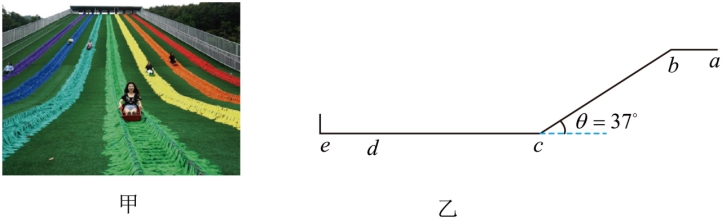 ,水平滑道末端e点装有一弹性墙,滑草车撞击后获得一等大反向的速率,d、e两点之间是滑草车回收区。已知