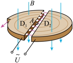 的圆心处的质子源A能不断产生质子(初速度可以忽略),它们在两盒之间被电场加速。当质子被加速到最大动能
