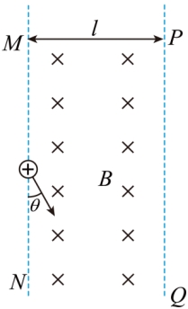 是磁场的边界。质量为m、电荷量为q的正电荷粒子(不计重力)沿着与
