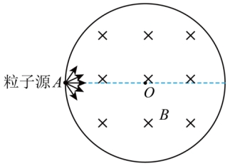 ,磁感应强度方向垂直纸面向里。大量同种带电粒子从圆上