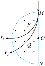点垂直于边界I射入磁场,经磁场偏转后,以与边界II成
