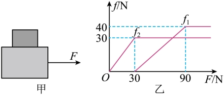 。现在用一水平拉力F作用在甲上,如图所示。最大静摩擦力等于滑动摩擦力,取g=10m/s2。要使物块甲相对于地运动,求:F至少为多大?
