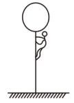 的人抓在一只大气球下方,气球下面有一根长绳。气球和长绳的总质量为