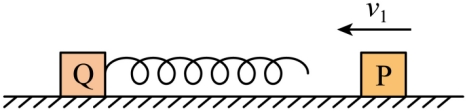 的左端固定一轻质弹簧。两个滑块以大小为