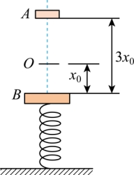 高度处自由落下,与钢板碰后A、B粘连在一起向下压缩弹簧,则