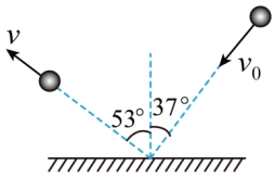 的速度斜射到坚硬的粗糙平面上,入射方向与竖直方向的夹角为37°,碰撞后被斜着弹出,弹出的方向与竖直方向的夹角为53°,速度大小变为