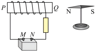 分别表示蓄电池和螺线管两极,下列判断正确的是( )