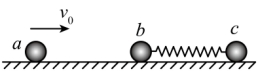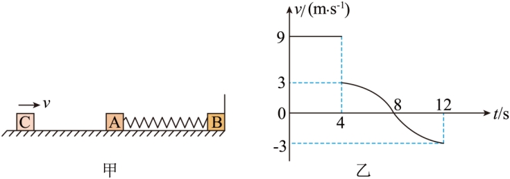 ,用轻弹簧拴接,放在光滑的水平地面上,物块B右侧与竖直墙壁接触但不粘连。物块C从