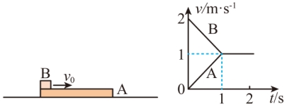 滑上原来静止的长木板A的表面。由于A、B间存在摩擦,A、B速度随时间的变化情况如下图所示,重力加速度为g,则下列说法正确的是( )