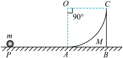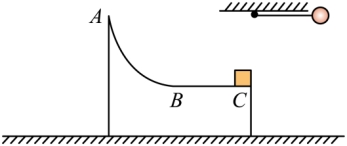 光滑圆弧面和粗糙水平面相切构成,切点为B,A点为圆弧面的最高点,装置右端C点放有一质量为1kg的小滑块(可视为质点),整体静置于光滑水平地面上。在C点正上方与A点等高处用轻质细绳连接一质量为3kg的小球,现用外力将该小球拉至水平位置后由静止释放,小球在最低点与滑块发生弹性碰撞后,滑块恰好能到达装置的A点。已知圆弧轨道的半径、细绳的长度及BC部分的长度均相等,则滑块与BC间的动摩擦因数为( )