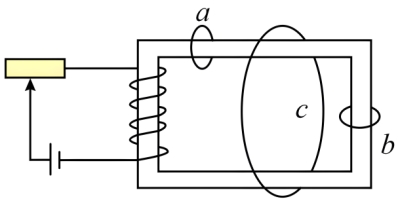 为原线圈(图中已标示外侧导线电流方向),