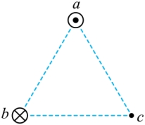 时,c点的磁感应强度沿着ac斜向下,则导线a的电流分别为