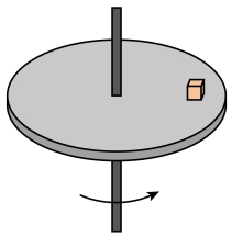如图一个圆盘在水平面内匀速转动,角速度是2rad/s,盘面上距圆盘中心0.50m的位置有一个质量为2kg的小物体在随圆盘一起做匀速圆周运动,小物体与圆盘间的动摩擦因数为0.50。求: