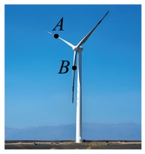 学校门口的车牌自动识别系统如图所示,闸杆在竖直面内绕转轴O向上转动,关于在闸杆上的A、B两点,下列说法正确的是( )