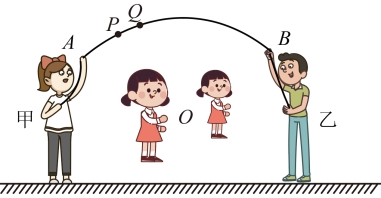 如图所示,甲、乙两同学握住绳子A、B两端摇动(A、B近似不动),绳子绕
