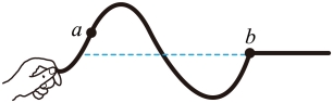 某人握着绳子的左端上下做简谐运动,t=0时刻,绳波的波形如图所示,a、b为绳中的两个质点。下列说法正确的是( )