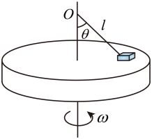 ,重力加速度为g,不计空气阻力。在可调速电动机的带动下,让水平圆台缓慢加速运动,试求: