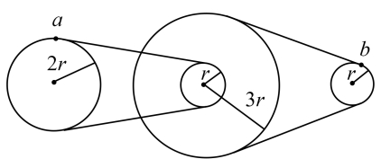如图所示为两级皮带传动装置,转动时皮带均不打滑,中间两个轮子是固定在一起的,四个轮子半径如图,则关于左轮边缘的a点和右轮边缘的b点运动参量的关系下列表述正确的是( )