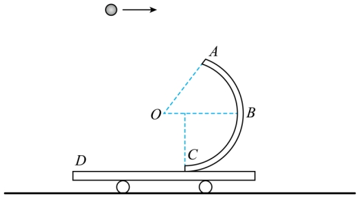 ,是四分之一圆弧,B点切线方向竖直,C点与小车表面平滑衔接,小车CD部分与小球之间的动摩擦因数