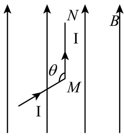 ”形,置于磁感应强度为B的匀强磁场中,导线的MN边、导线所在平面均与磁场方向平行。当导线中通以电流I时,该导线受到的安培力大小为( )