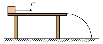 圆轨道的最高点平滑相接。重量为G的小物块在方向水平向右、大小等于小物块重力的拉力作用下,从离桌面右端x处静止开始运动,到