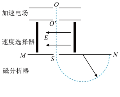 进入速度选择器并恰好沿直线通过,粒子从小孔S进入磁分析器后做匀速圆周运动打在照相底片上。已知速度选择器中匀强电场的电场强度为E,磁分析器中匀强磁场的磁感应强度为