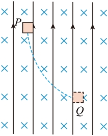 如图所示,空间中存在垂直于纸面向里的匀强磁场和竖直向上的匀强电场,一带正电的小物块从P点无初速度释放,小物块沿图中的虚线轨迹运动到Q点。则在此过程中( )