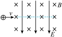 如图所示,匀强磁场方向垂直纸面向里,匀强电场方向竖直向下,有一正离子恰能沿直线从左向右水平飞越此区域。不计重力,则( )