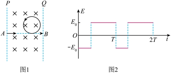 时刻,一带电量为+q、质量为m的带电微粒从边界P上的A点处水平射入该区域,先沿直线运动到某点,再经历一次完整的半径为L的匀速圆周运动,最后沿直线运动从边界Q上的B点处离开磁场,重力加速度为g。求: