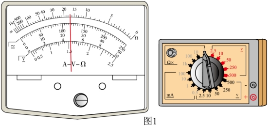②正确操作后,多用电表的指针位置与选择开关如图1所示,则