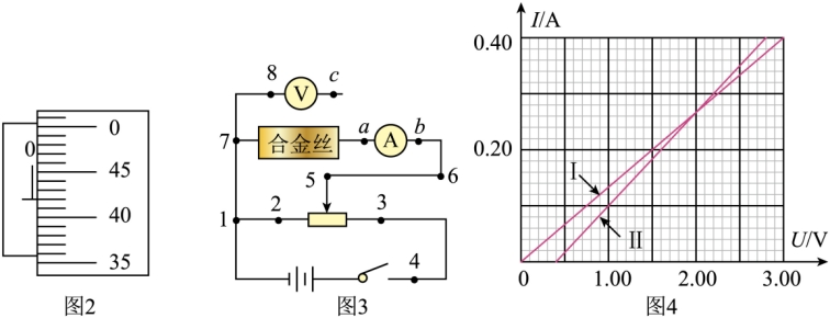 ①螺旋测微器测量合金丝直径时的刻度位置如图2所示,读数为