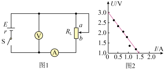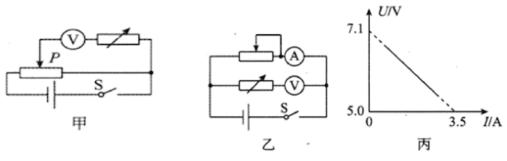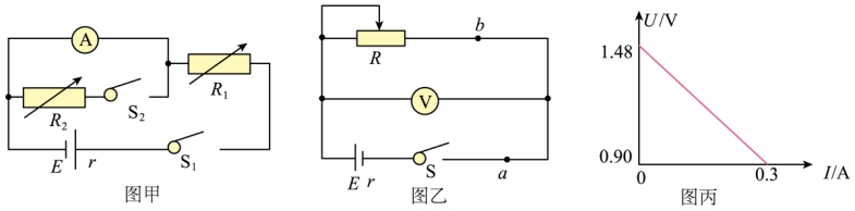 (3)用该扩大了量程的电压表(电压表的表盘没变),采用伏安法测电源电动势E和内阻r,实验电路如图乙所示,得到多组电压U和电流I的值,并作出