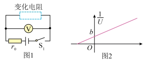 随的变化图线,如图2所示,直线与纵轴的交点坐标为b,斜率为k,则电源的电动势为,内阻为(后两空用b、k或