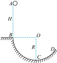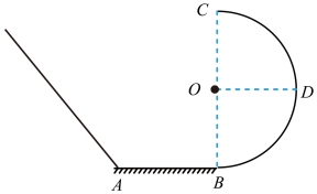 的光滑半圆轨道BDC与水平地面相切于B点。小滑块从斜面上距水平地面高度为h处由静止下滑,经过水平地面后进入圆轨道。已知小滑块质量