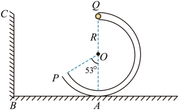 的小球在最高点Q受到轻微扰动,由静止沿管道从右侧滑下。小球经最低点A从管道