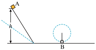 的地方从静止下滑,过一段时间无碰撞地进入足够长的水平面,与小球B发生碰撞,碰撞过程中损失的机械能为碰前瞬间机械能的