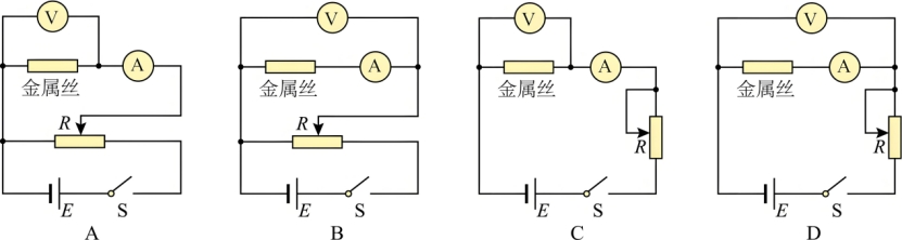 (3)为使通过待测金属丝的电流能从0开始变化,实验电路应选用下图中的。