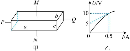 ,通入沿PQ方向的电流时,导电材料两端的电压U与其通过的电流I的关系图像如图乙所示。下列说法正确的是( )