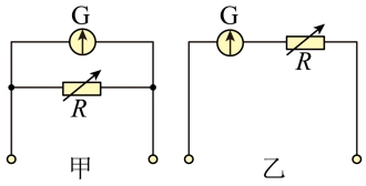 如图所示,大量程电压表、电流表都是由灵敏电流表G和变阻箱R改装而成。已知灵敏电流表G的满偏电流为