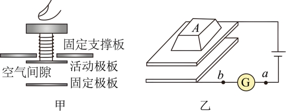 B.按键的过程中,图乙电流计中电流从a流向b