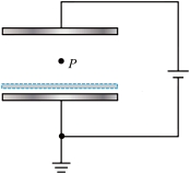 如图所示,真空中水平放置的平行板电容器的两极板与电压恒定的电源相连,下极板接地(电势为0),极板间的