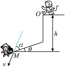 ,母猴的初速度沿水平方向,落在M点时速度方向与斜坡的夹角