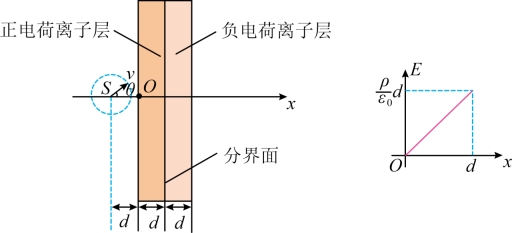 ,厚度均为d。以正离子层左边缘上某点O为坐标原点,水平向右为正方向建立坐标轴