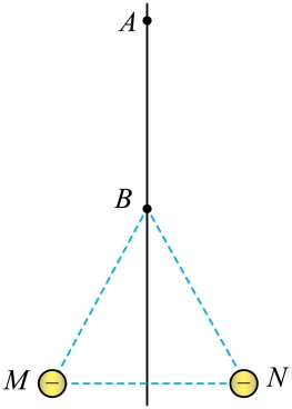 两点连线的中垂线上,A、B是细杆上的两个点,在