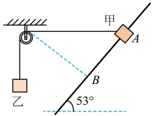 ,轻质细线跨过光滑定滑轮,两端分别与质量相同的物块甲、乙相连,乙悬在空中,此时与甲连接的细线水平,细线不松弛。现让甲从A点由静止释放,当甲运动到