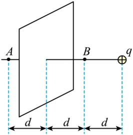 如图所示,电荷量为q的正点电荷与竖直放置的均匀带电薄板相距2d,点电荷到带电薄板的垂线通过板的几何中心,垂线上的A、B两点到薄板的距离均为d。已知A点的电场强度为0,下列说法正确的是( )