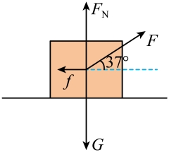 如图所示,一物体受四个力的作用,重力G=100N、与水平方向成37°角的拉力F=60N、水平地面的支持力FN=64N、水平地面的摩擦力f=16N,已知sin37°=0.6,cos37°=0.8,求: