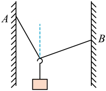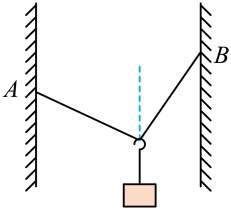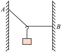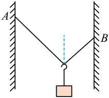 如图所示,将一细绳的两端固定于两竖直墙的A、B两点,通过一个光滑的挂钩将某重物挂在绳上,下面给出的四幅图中有可能使物体处于平衡状态的是( )
