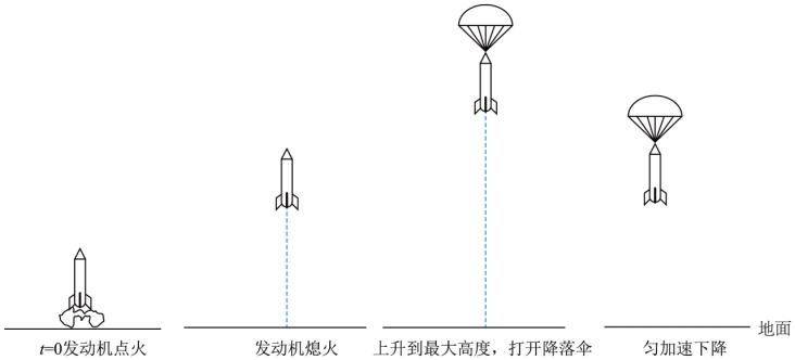 时发动机熄火,在达到最大高度后,火箭打开顶部的降落伞,在降落伞作用下向下做匀加速运动,到达地面时的速度大小为