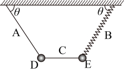 ,下端均连接质量为m的D、E两个小球,两小球间通过水平轻绳C连接,处于静止状态。已知重力加速度大小为g,某时刻轻绳C突然断裂,断裂瞬间关于小球D、E的加速度